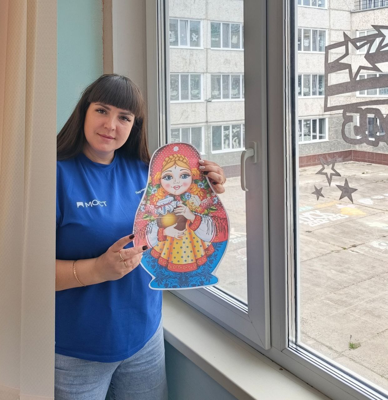 🇷🇺 Окна школ украсили главным символом страны, флагами, матрешками и другими символами страны.