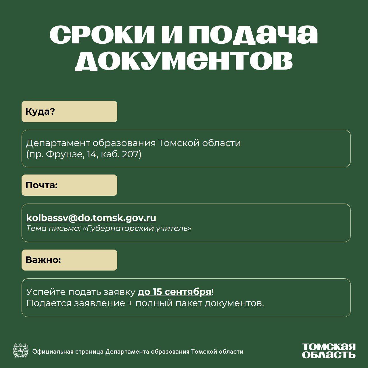 📍 Принести лично: Департамент образования Томской области (пр. Фрунзе, 14, кабинет 207).