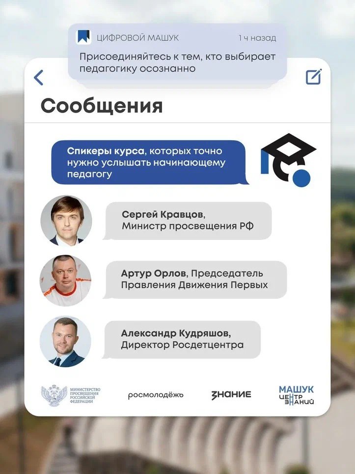 Центр знаний «Машук» запускает второй образовательный курс «Введение в специальность» — идеальный старт для студентов-первокурсников педагогических вузов и колледжей, а также для молодых учителей, наставников и всех, кто ценит образование.