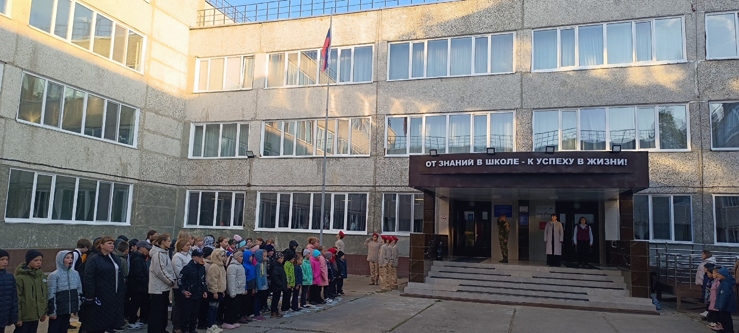 💥 Во всех школах муниципального округа Города Кедрового проходят еженедельные линейки, посвященные поднятию государственных флагов и исполнению гимнов.